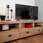 The property includes a balcony, complete with a sofa set and modern conveniences such as a flat-screen TV with satellite channels. A highlight of the apartment for guests is the presence of hairdryers, complimentary toiletries, and bath sheets in the bathroom. Moreover, there is a separate toilet and a shower as well.